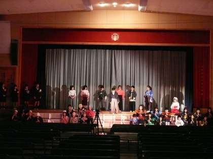 淀川の歴史を、シリアス(?)な演技で表現しようとしています。BGMのコーラス・リコーダーも仕上がってきました。