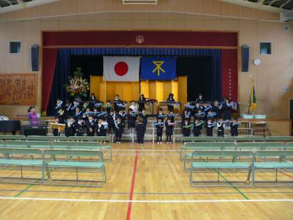 今日の1年生は、大掃除をすませ、4月の入学式に向けて新入生を迎えるお祝い呼びかけの練習にラストスパートをかけ練習しました。