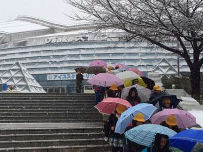 この大雪の中、6年生は元気に卒業遠足に出かけています。大阪プールに無事に着きました。
