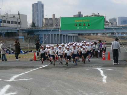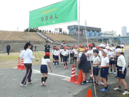 学年の負荷からすると、しんどいのは、中学年かもしれません。とはいえ、すばらしい走りを見せてくれました。全員が、予想以上の速さでゴールに戻ってきました。どの児童も満足そうな自慢げな顔をしてゴールゲートをくぐりました。
