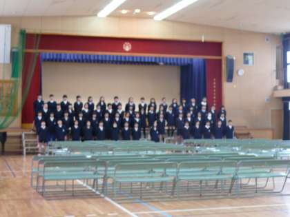 今日までが、各学年ごとの練習を実施します。明日からは、5,6年生合同で練習します。卒業生と在校生が力を合わせて厳粛な中にも心のこもった式を演出し、すばらしい雰囲気の中で、卒業生を送り出します。