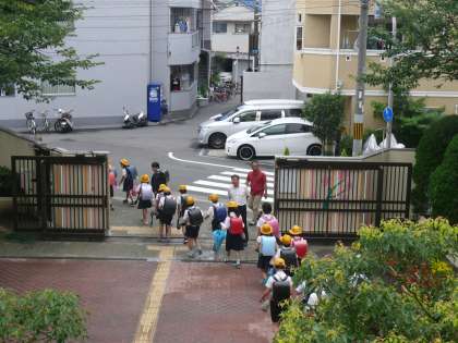 そのあと、集団下校をしました。昨日のような、台風や自然災害、その他、緊急で下校する場合の練習も兼ねています。