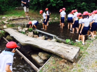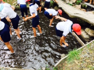 説明も終わりいよいよ川に入り、魚を捕まえます。水の温度は、5度。あまりの冷たさに思わず声が出ます。