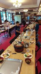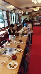 朝の会でしっかり起きた体は、きっとお腹がペコペコなことでしょう。ということで、食事係さんの準備のもと朝食の時間になりました。しっかり食べて今日も一日がんばりましょう。