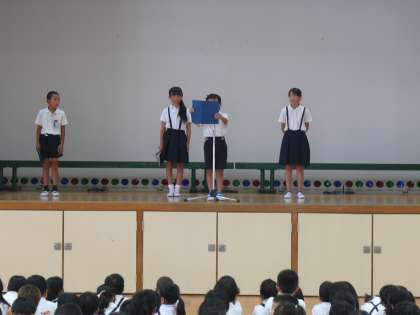 式の最後に、4年生の代表が2学期の決意を発表して式を終了しました。