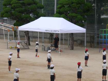 10月1日の運動会に向けての練習が、今日から本格的に始まりました。まず始めに、朝の児童朝会の時間に石拾いからです。それぞれの場所の石を丁寧に拾います。走ったりダンスをしたりすることで、けがをしないようにするためです。また、テントも張りました。まだまだ暑い日が続く中での練習になるので、子どもたちの体調に配慮して張り出します。本番まで、3週間。けがすることなく、みんなが元気に力いっぱいがんばれるよう準備を整えています。