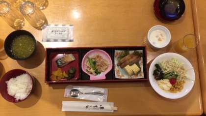 朝食タイムです。ザ・和食。残さずしっかり食べています。