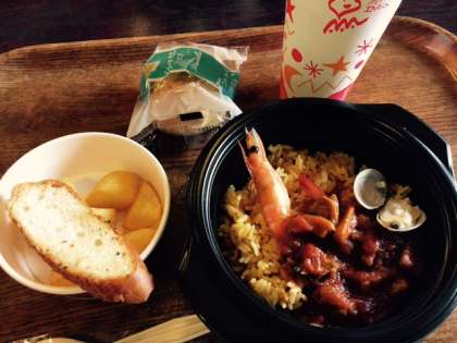 スペイン村の中では、グループ活動です。アトラクションに乗ったり、パレードを見たり。昼食は、スクールチケットを使い、自分たちが食べたい物がある店に行き、昼食をとります。おいしそうなメニューですね。