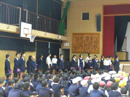 今日の発表は、6年生でした。6年生は、先日の修学旅行の様子を下級生に伝えました。自分たちが現地で撮影してきた画像を「プレゼンテーション」ソフトを活用して、画像と活動を融合させて発表しました。