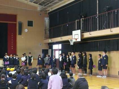 木曜日、朝の時間は、「児童集会」になっています。委員会活動・学年の発表や集会委員会活動を縦割り班活動で毎週しています。