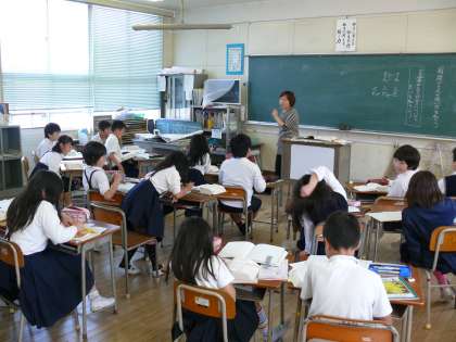 3年生から導入される学習形態です。本校での少人数学習とは、2学級を3つの学習集団に分割して、1つの学習集団の人数を少なくして学習する体制です。