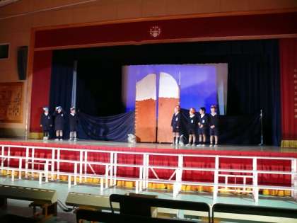 今日は、2年生の練習風景です。2年生は、「たねまきようせいをたすけだせ!」というお話を劇で表現します。たくさんの動物や妖精がでてくるお話です。子どもたちは、いろいろな小道具やセリフを言う時の動作などを自分たちで相談しながら取り組んでいます。森のなかまたちが協力して、無事に妖精を助けだすことができるのか!それぞれの動物が自分の特性を生かして助け出そうとします。誰もが大切な役割をもっていることを、2年生なりに解釈し、演じています。ぜひ、当日をお楽しみください。