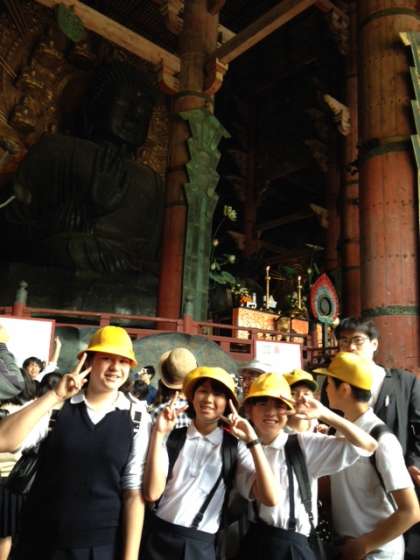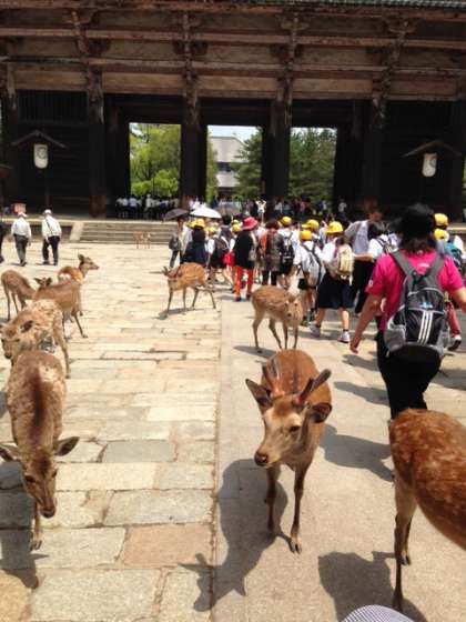 奈良公園の鹿。そして、教科書に載っている「奈良の大仏」の本物が目の前にそびえたっています。写真でみるのと実物では、迫力が違います。本物を見学して、歴史を肌で感じることができたでしょう。