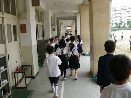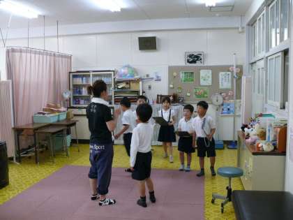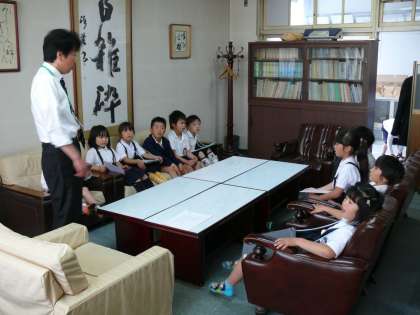 1・2時間目に、1年生と2年生が学校たんけんを行いました。2年生が先導役となって、1年生を校長室や図書室、保健室、パソコン室、なかよし教室など、学校の中を案内してまわりました。