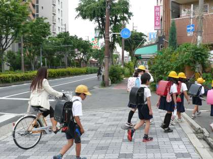 学校では、「登校巡視」として、教職員が登校の様子を見回っています。その上で、安全を確保するために、指導したり声掛けをしたりしています。