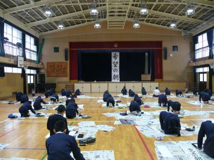静寂に包まれた体育館では6年生の書き初め大会が行われていました。「希望の朝」という字を新年まっさらな気持ちで集中して書いていました。卒業を迎える今年は、どんな一年になるでしょうか。それぞれの思いや願いのこもった字が書けました。