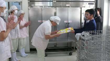 1月24日から30日までは、学校給食週間です。日本の学校給食は、今から126年も前に、山形県の小学校が初めて、家がまずしくてお弁当を持ってこられない子どもたちのために無料で昼食を出したことから始ったといわれています。戦争が始まると食べ物が不足して一度中止になりましたが、アメリカから援助物資を受けて、昭和21年12月24日に戦後初めての給食が実施されました。この記念すべき日と感謝の気持ちを忘れないために、冬休みに重ならない1か月後の1月24日から30日を「全国学校給食週間」としました。