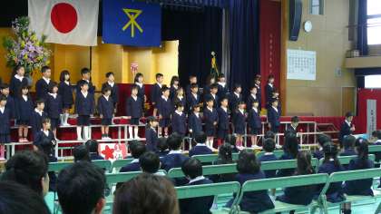 また、式の中で、新2年生が歓迎の催しをしてくれました。目の前にいる1年前の入学児童に向けて、歓迎の演技を堂々と披露してくれました。1年間でこんなに成長するんだと、来賓の皆様にも誉めていただきました。教育の力というのは、すばらしいということとともに、責任の重さをひしひしと感じる今日の入学式でした。