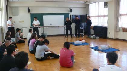 今日は都島消防署の方々に来ていただき、子どもたちの命を守るための勉強会、「救命救急講習」をしました。