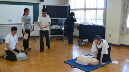 万一があってはいけませんが、水泳指導前に研修を毎年することで、何かあった時のために急な場合に備えて子どもたちの安全、命を守ることができるように万全を期しています。