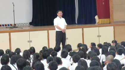 また、夏季休業中は、家で過ごすことが多くなります。この数か月での自然災害で、命の大切さ、自分の身を守ることを心がけることなど、命が一番であることを話しています。長い休み、リフレッシュすること楽しむことをしてくれたらそれでいいのですが、2学期に全員が元気な顔を見せてくれることを願って、1学期の終業式としたいと思います。