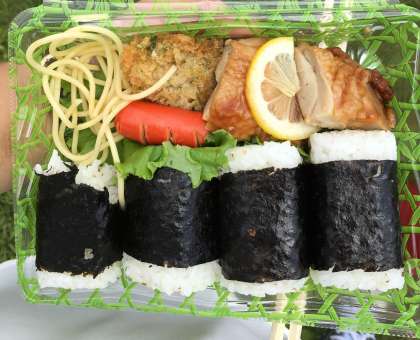 到着して、まずは腹ごしらえ。昼食はおにぎり弁当です。