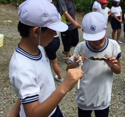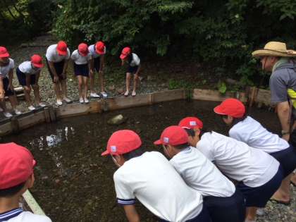 川をせき止めて「いけす」にしたところに入ってつかみどりをします。山から流れてきた水なのでとっても冷たいんですよ。足を入れたとたんに「つめたっ!」と思わず声が出てしまうほどです。
