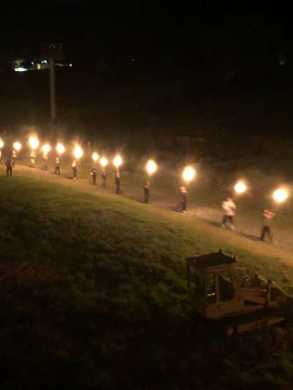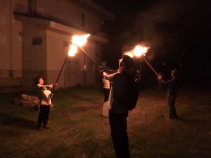 ここから宿舎までの暗い道を照らすのは、お昼にそれぞれが作ったたいまつの灯りです。