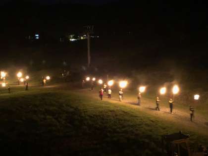 一人ずつ火をもらい、一列になって宿舎まで帰りました。とてもきれいな光景ですね。