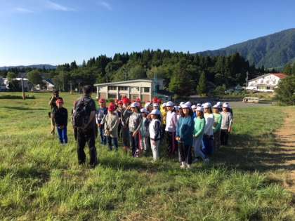 山の空気はおいしくて、朝の会も気持ちがいいです。
