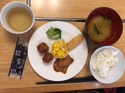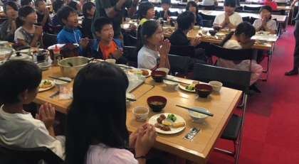 朝ごはんの時間になりました。それぞれが席に着いたところで食事係さんの「いただきます」のあとにみんな一斉に「いただきます!」