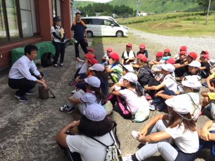 同じく林間学習に来ていた上松前校長先生が訪ねてきてくださいました。久々の再開にみんなも歓声を上げていました。