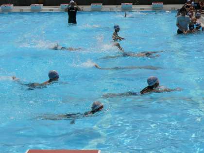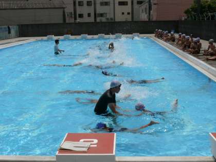 学校のように25mで休んで50m泳ぐのではなく、いっきに50mを大観衆の前で泳いで、自分自身にいい体験をしようと思う人は、後日、くわしい案内を配布しますので、申し込みましょう。