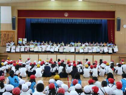 今日の児童集会は2年学年発表でした。町たんけんで足を運んだ「蕪村通り商店街」。自分たちでお店の人にインタビューし、まとめたものをみんなの前で発表していました。調べたものをまとめ、そしてこのような形で表現すること、大東小の子どもたちに身につけさせたい力の一つです。すばらしい発表でした。
