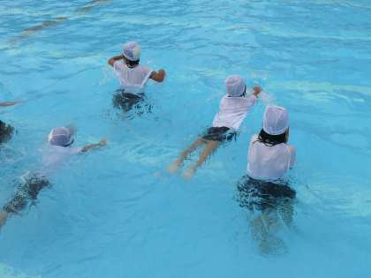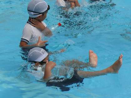 梅雨の合間をぬって、着衣水泳の訓練ができました。1,2年生では、まだまだ、泳ぐことがスムーズではありませんが、こうした体験が大切なのです。