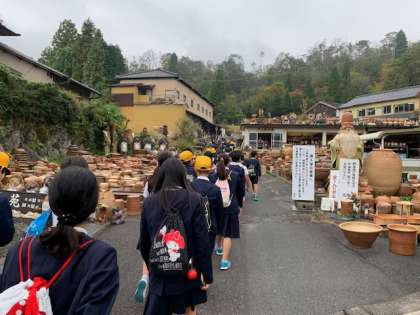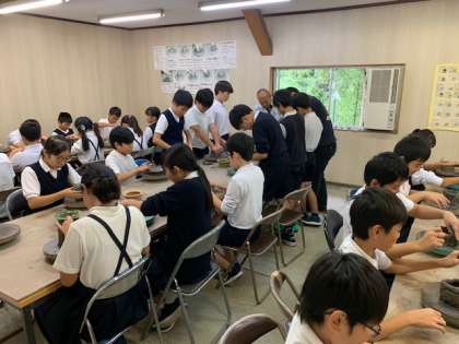 予定通りに一つ目の活動である宗陶苑に到着しました。ここでは、信楽焼の体験をします。作り方の説明を聞いて、茶わんや湯飲みなどを作ります。どんな作品ができるでしょうか?楽しみですね。