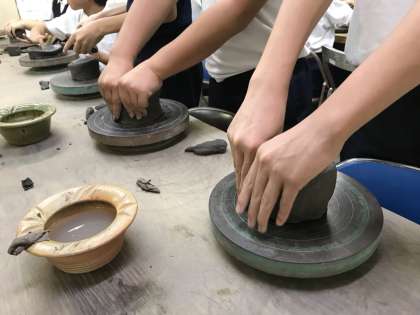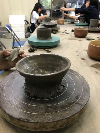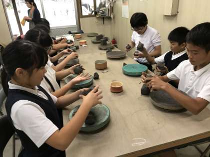 いよいよ陶芸体験です。粘土をこね、思い思いの作品を作ります。なかなか思うようにはできません。悪戦苦闘の末、仕上がった作品です。あとは、窯元さんに焼いて仕上げてもらいます。完成品が楽しみですね。