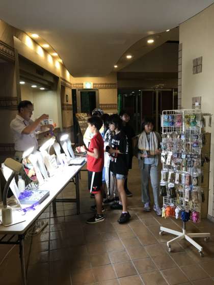 晩御飯のあとは、お土産タイムとお風呂タイムです。半分づつ交代で活動します。お土産は、宿舎のロビーにたくさんのお土産が並べてあります。たくさんあって目移りしてしまいそうです。どんなお土産を買っているのか?帰ってからのお楽しみにしてくださいね。