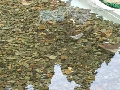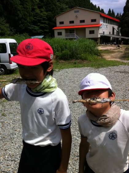さあ焼き上がりました。ダイナミックにそのまま食らいつきます。さっきまで生きていた魚を自分で捕まえ、すぐに焼き、この自然の中で、パックと食べるこの醍醐味が最高です。魚が苦手な児童もやっぱりパクり!捕まえることから食べるまで。とてもいい体験ができたのではないでしょうか。