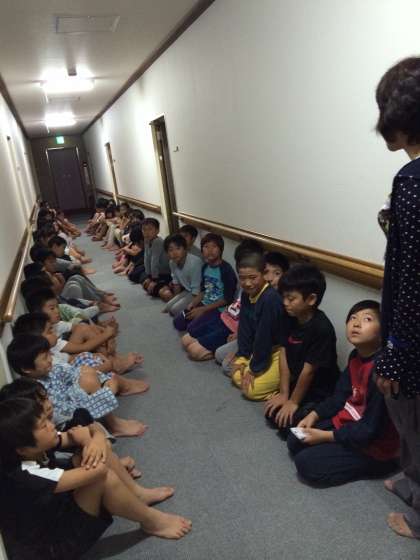 決して、怒られているのではありません。1日目のしめくくりのミーティングの最中です。鉢高原へ学年でやって来て、どんな気持ちなのか。貴重な1日をどう過ごしたのか。そして、明日から、どのように活動するのかを確認し合いました。