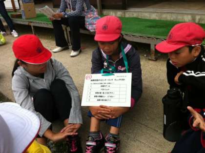 2日目午前の行事は、「高原オリエンテーリング」です。グループで各ポイントを回り、各ポイントの課題をクリアしてきます。回り方やペース配分はチームで考えて回ってきます。