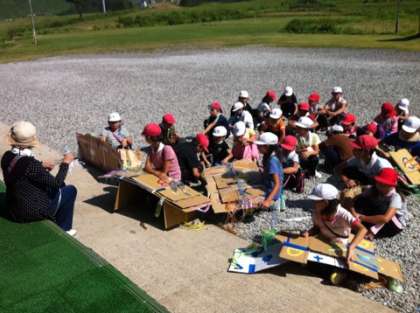 「2014鉢伏高原段ボールレース」の始まりです。主催者からの諸注意を聞きます。落ち着いて聞いていても心の中では高ぶる闘志がふつふつと燃えたぎっています。