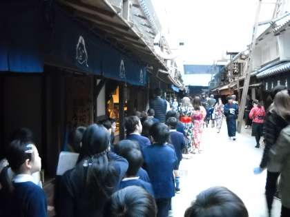 はじめに、江戸時代の街並みを再現したフロアーを見学して回りました。ワークシートの問題に意欲的に取り組みながら、今の町と昔の町との様子の違いを学習することができました。