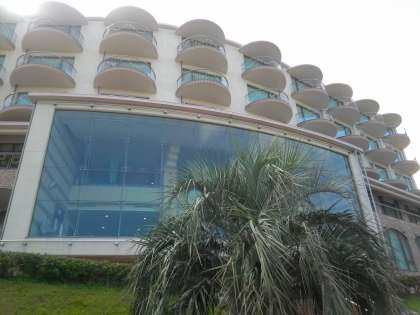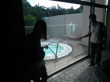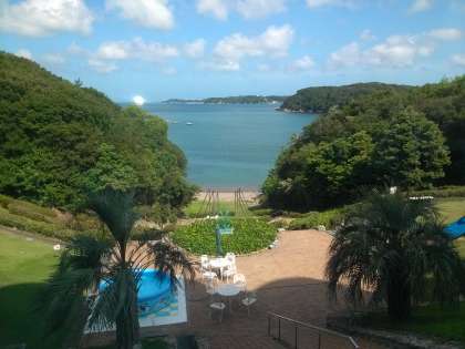 子どもたちが宿泊する「サンぺルラ志摩」に着きました。ここは、志摩市磯部町にあり、部屋からは的矢湾を臨むことができ、とてもきれいなホテルです。