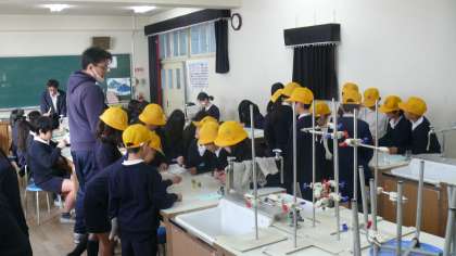 アウトドアスポーツクラブではサッカーをしている様子を、インドアスポーツクラブではドッジボールの様子を、音楽クラブでは「ダンシングヒーロー」を器楽合奏している様子を、科学クラブでは紙でコマを作っている様子を、ゲームクラブではトランプをしている様子を、ダンスクラブではクラブ発表に向けてダンスの振り付けの練習の様子を、パソコンクラブではクラブ展示で飾る新聞をパソコンソフトを使って作成する様子を見学させてもらいました。