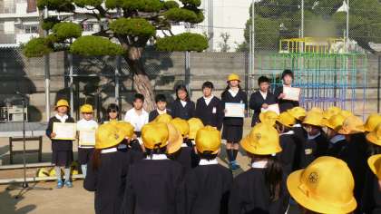 今日の児童朝会で、2月12日〜15日に行われた清掃強調週間の表彰が行われました。