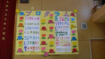 この1年、いろんな場面でこの大東小学校をリードしてくれた6年生。在校生からの感謝の気持ちをしっかり受け取ってほしいと思います。