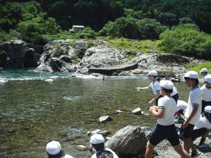 開舎式のあと、近くを流れる吉野川の川原へ出かけました。