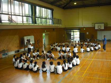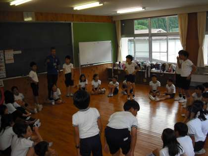 学年全体でオリエンテーションした後、各学級でいろいろなアクティビティに挑戦します。