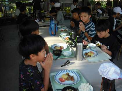 続いて、中庭で朝ごはんです。午前中のエネルギーを蓄えます。